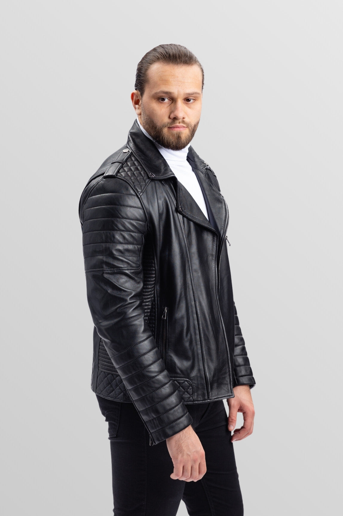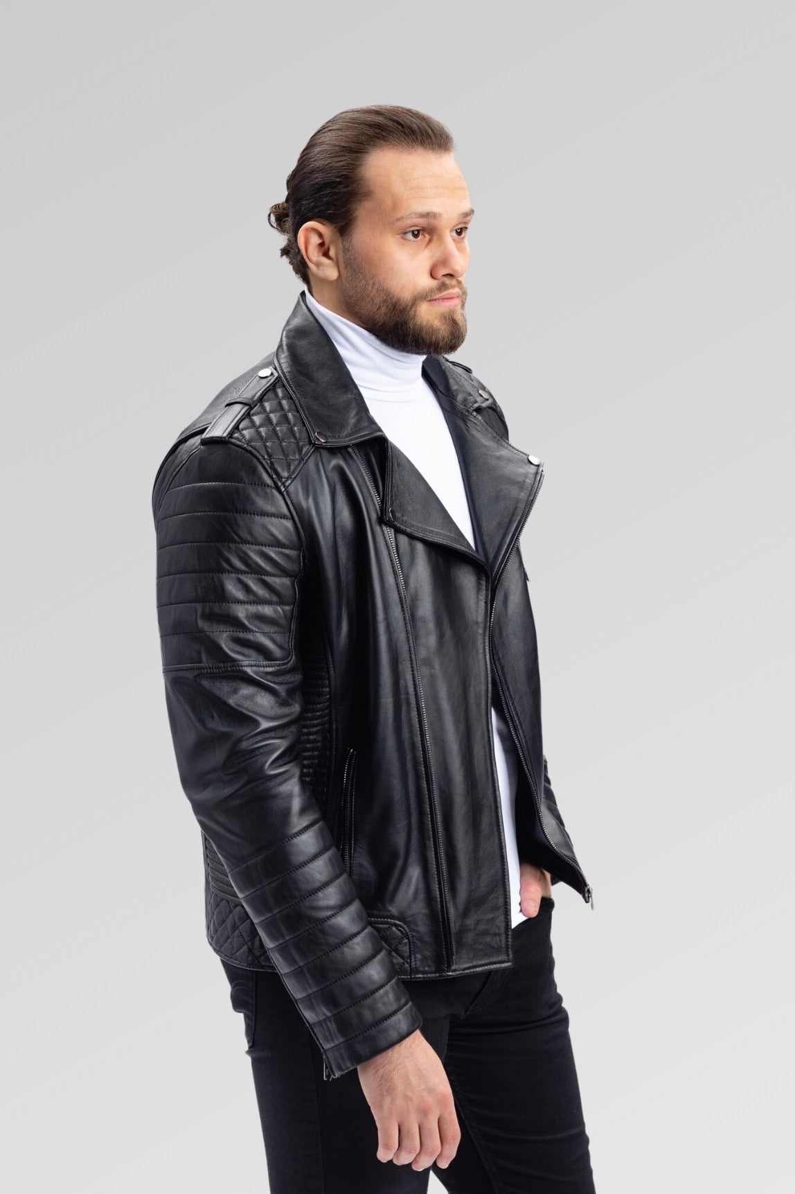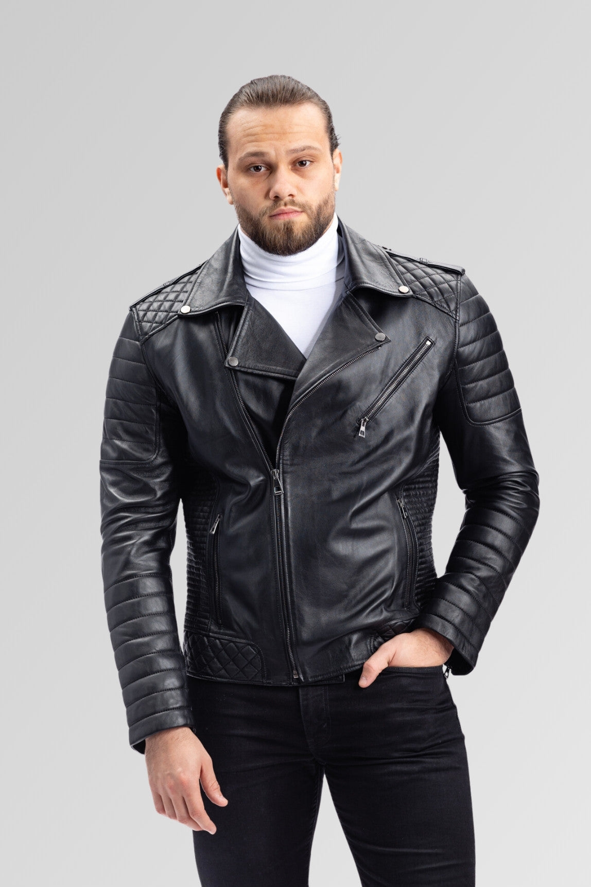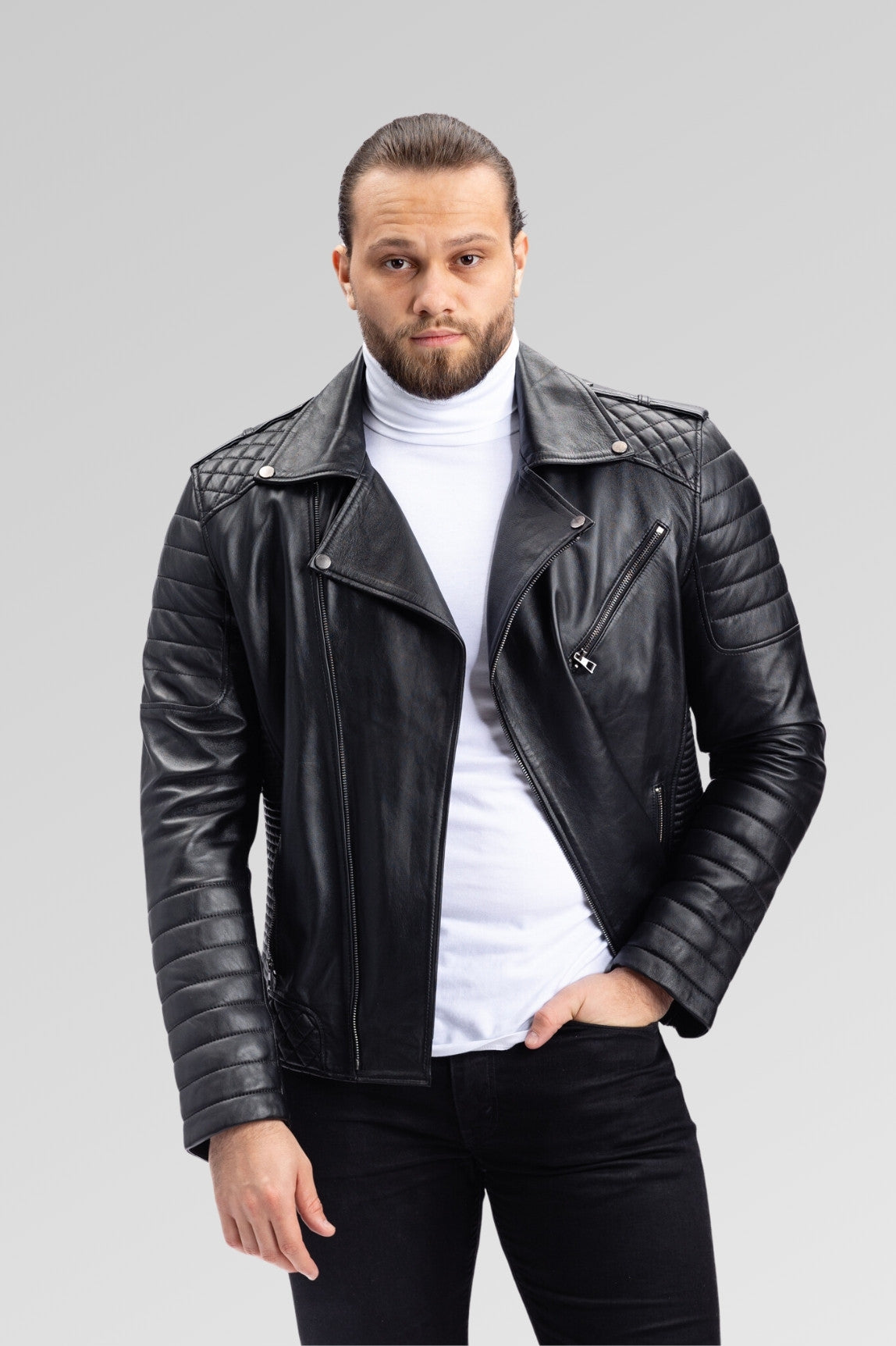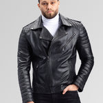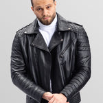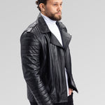 Geacă Biker din Piele Naturală, Bărbați, Obsidian 93