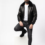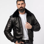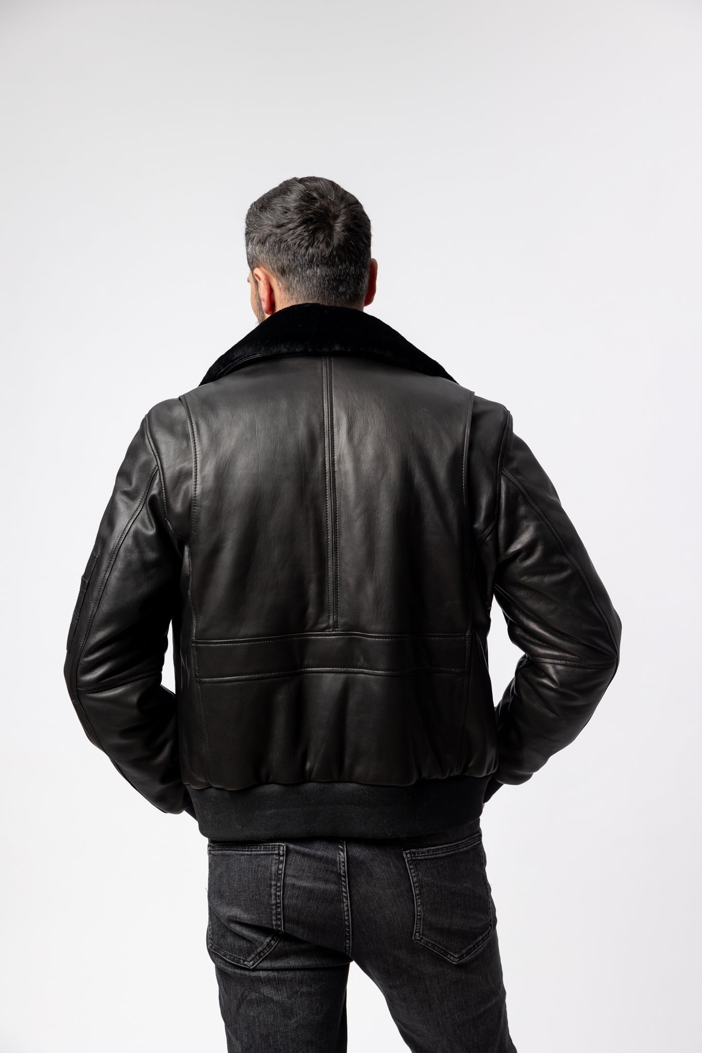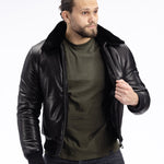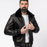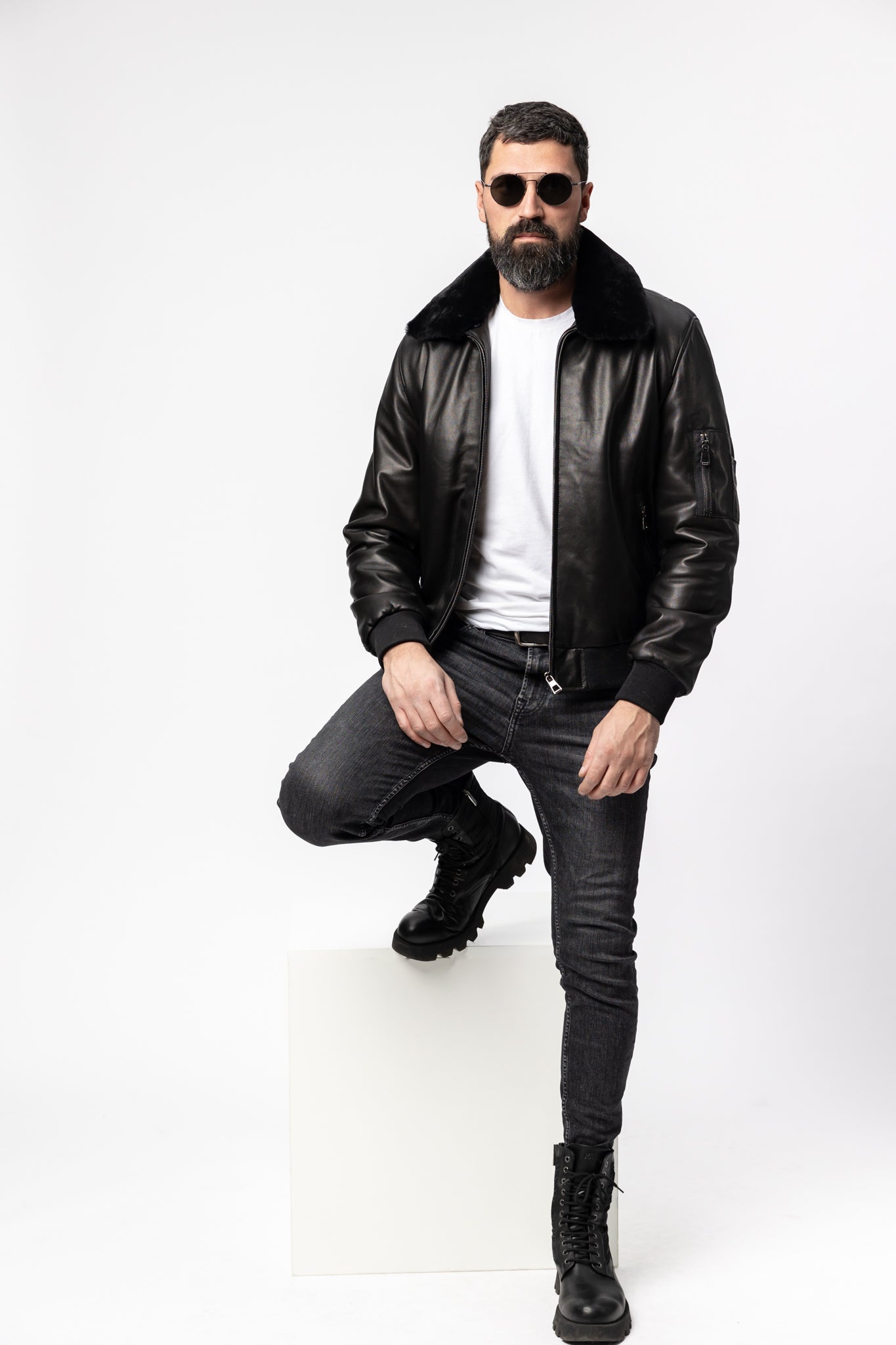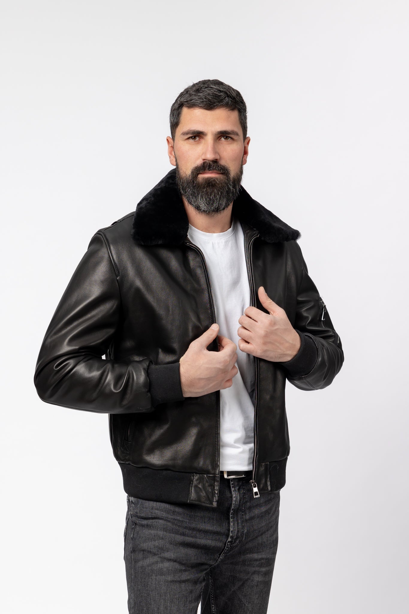 Geacă din Piele Naturală cu Blană, Bărbați, Obsidian 115