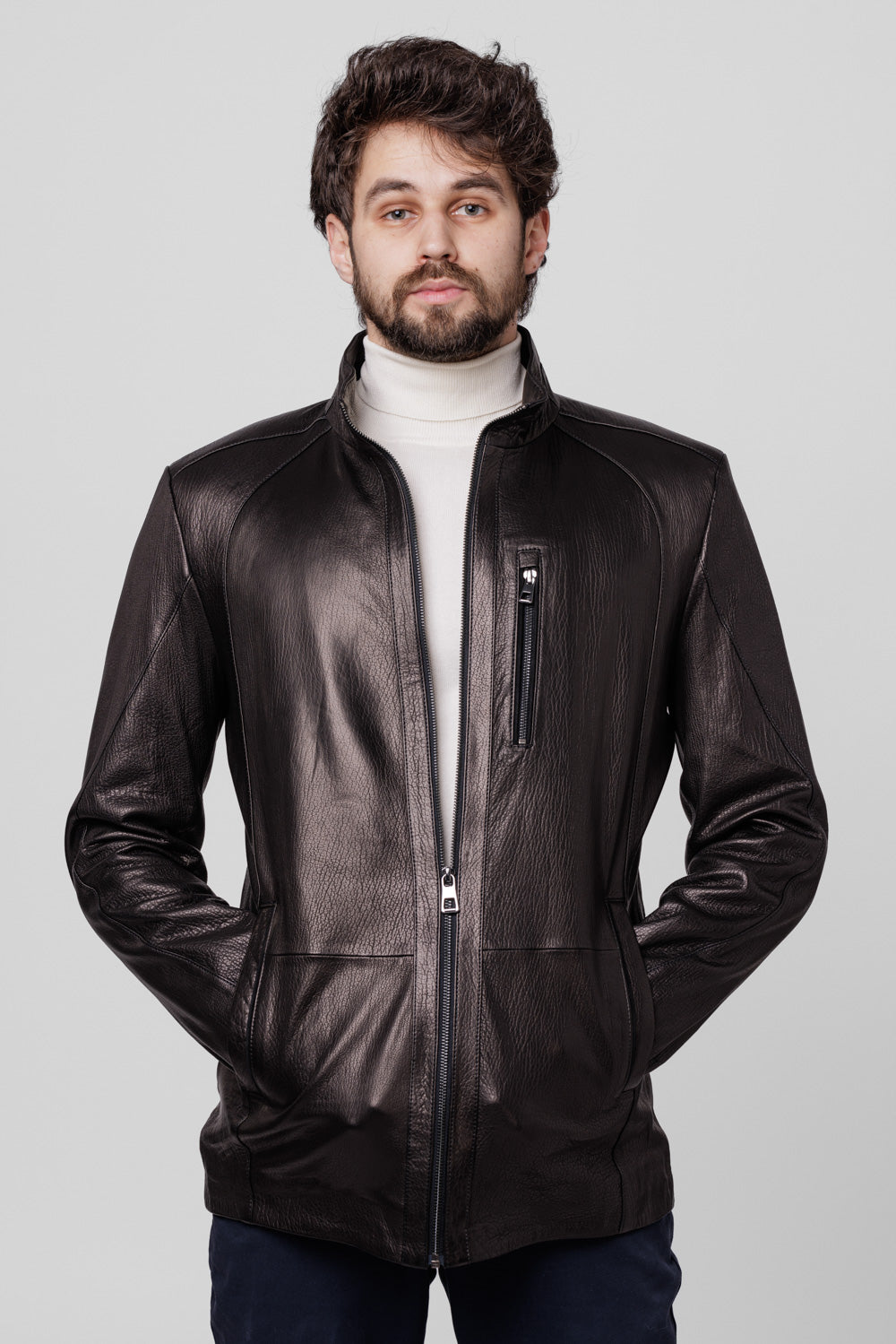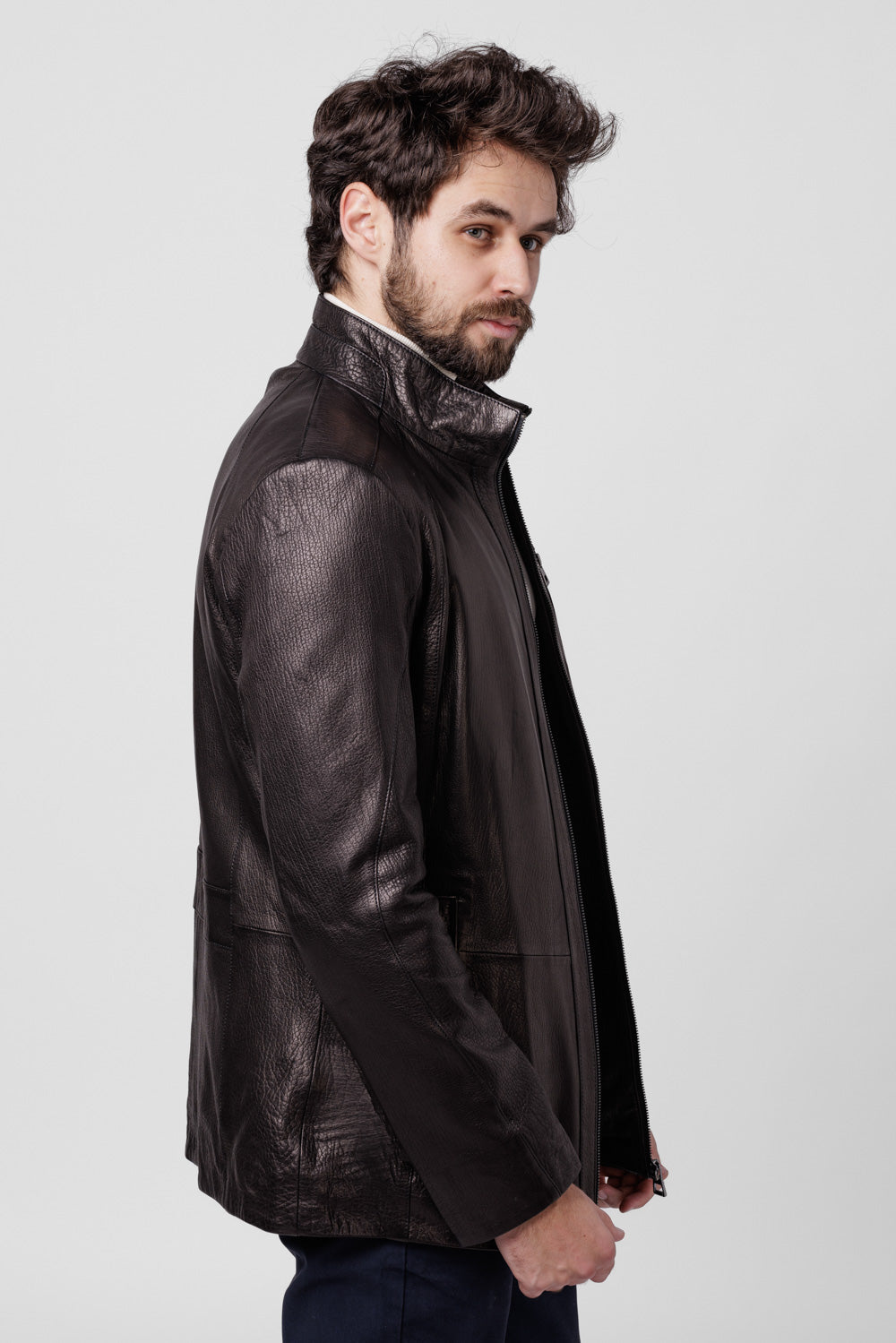 Cu o croială clasică și detalii atent lucrate, precum buzunarele laterale și închiderea cu fermoar, această geacă oferă un echilibru perfect între stil și funcționalitate. Este un element esențial în garderoba oricărui bărbat care dorește să își completeze ținutele cu o notă de rafinament și robustețe.