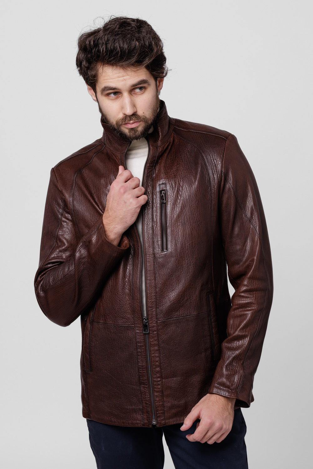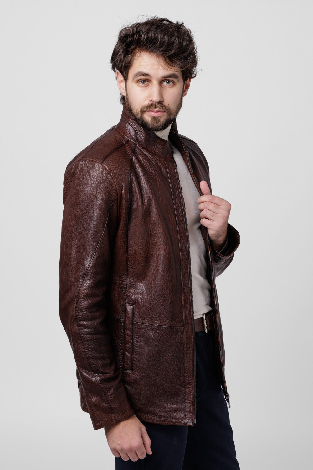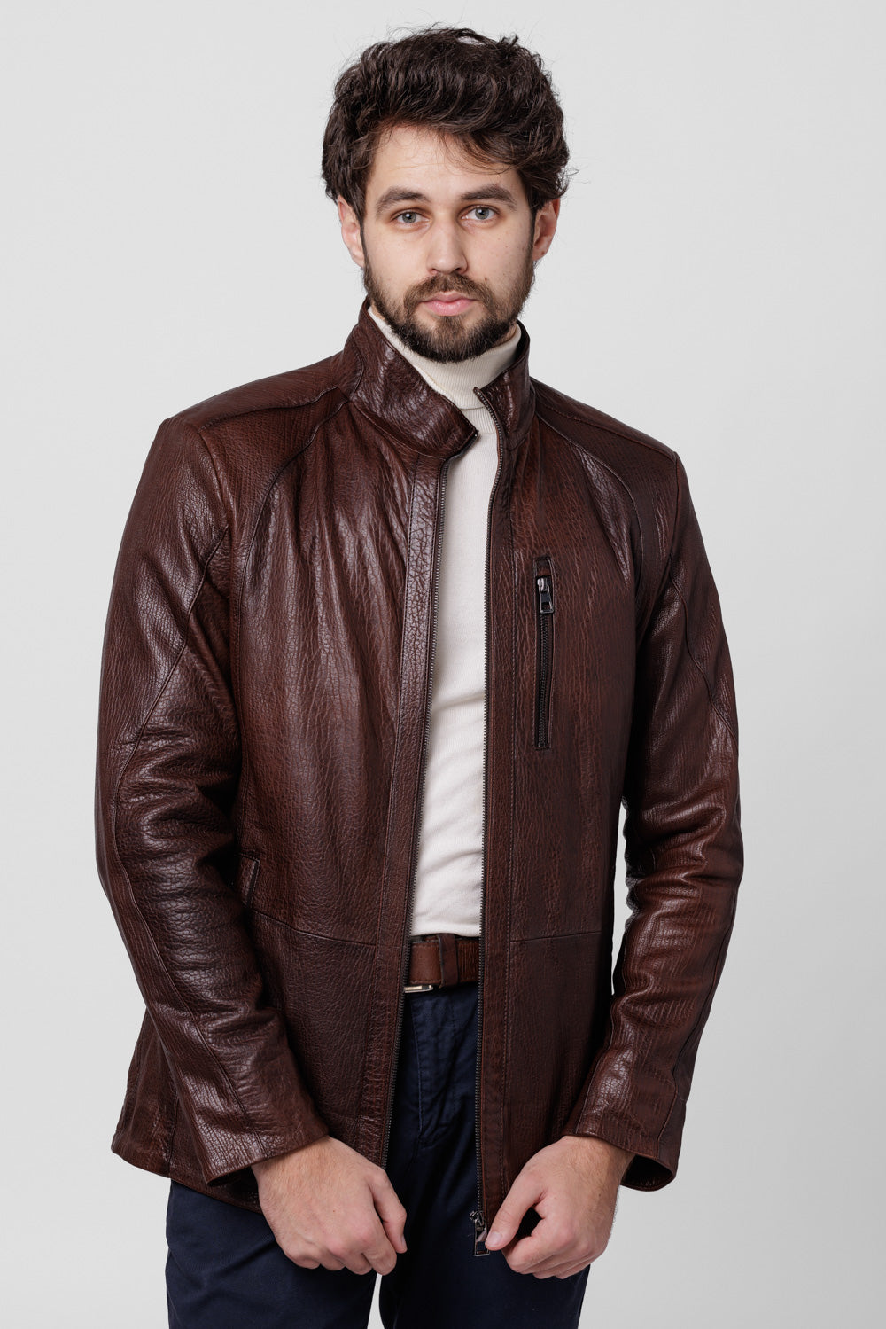 Geacă din Piele Naturală Jumbo, Bărbați, Chocolate 118
