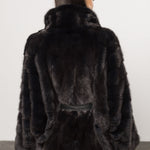 Croiala oversized, completată de cordonul din piele naturală, evidențiază talia și aduce echilibru între confort și feminitate. Gulerul cu rever amplu adaugă o notă clasică și distinsă, iar textura blănii se distinge prin densitate și luciu natural.