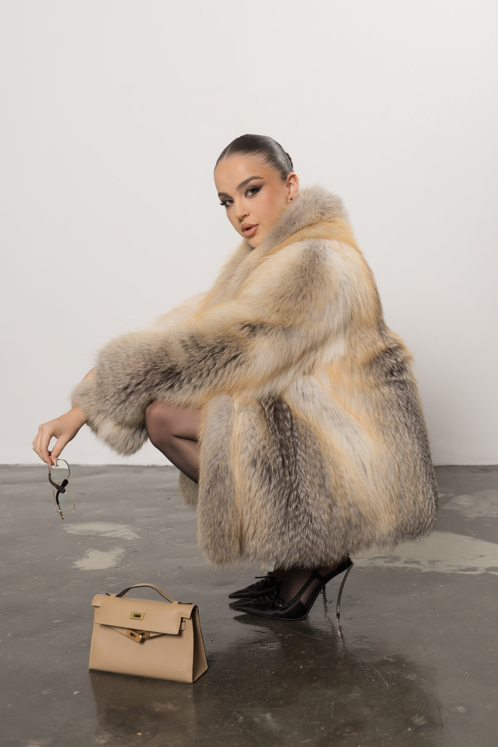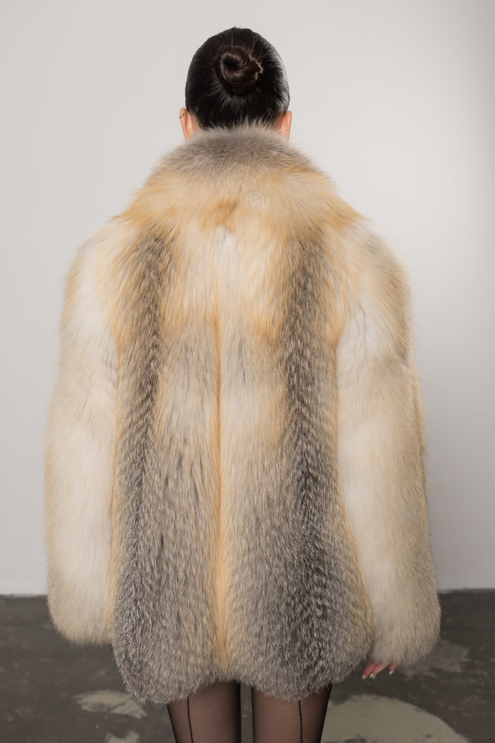 Comandă acum și adaugă garderobei tale o haină exclusivistă din blană naturală de vulpe, în care frumusețea tonurilor aurii se îmbină cu prestanța designului clasic.
