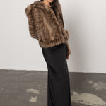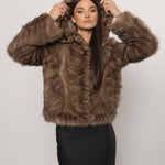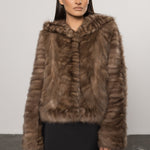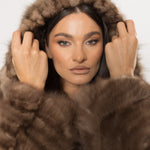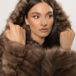 Nuanța Sable Brown scoate în evidență reflexele calde și bogate ale blănii, creând un efect vizual sofisticat, care se schimbă subtil în lumină. Croiala scurtă, completată de gluga amplă, conferă acestei haine atât un aer modern și versatil, cât și protecție în zilele reci de iarnă.