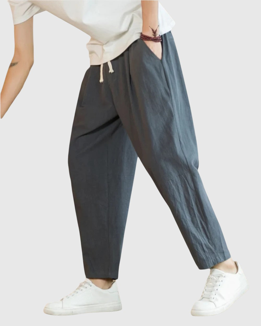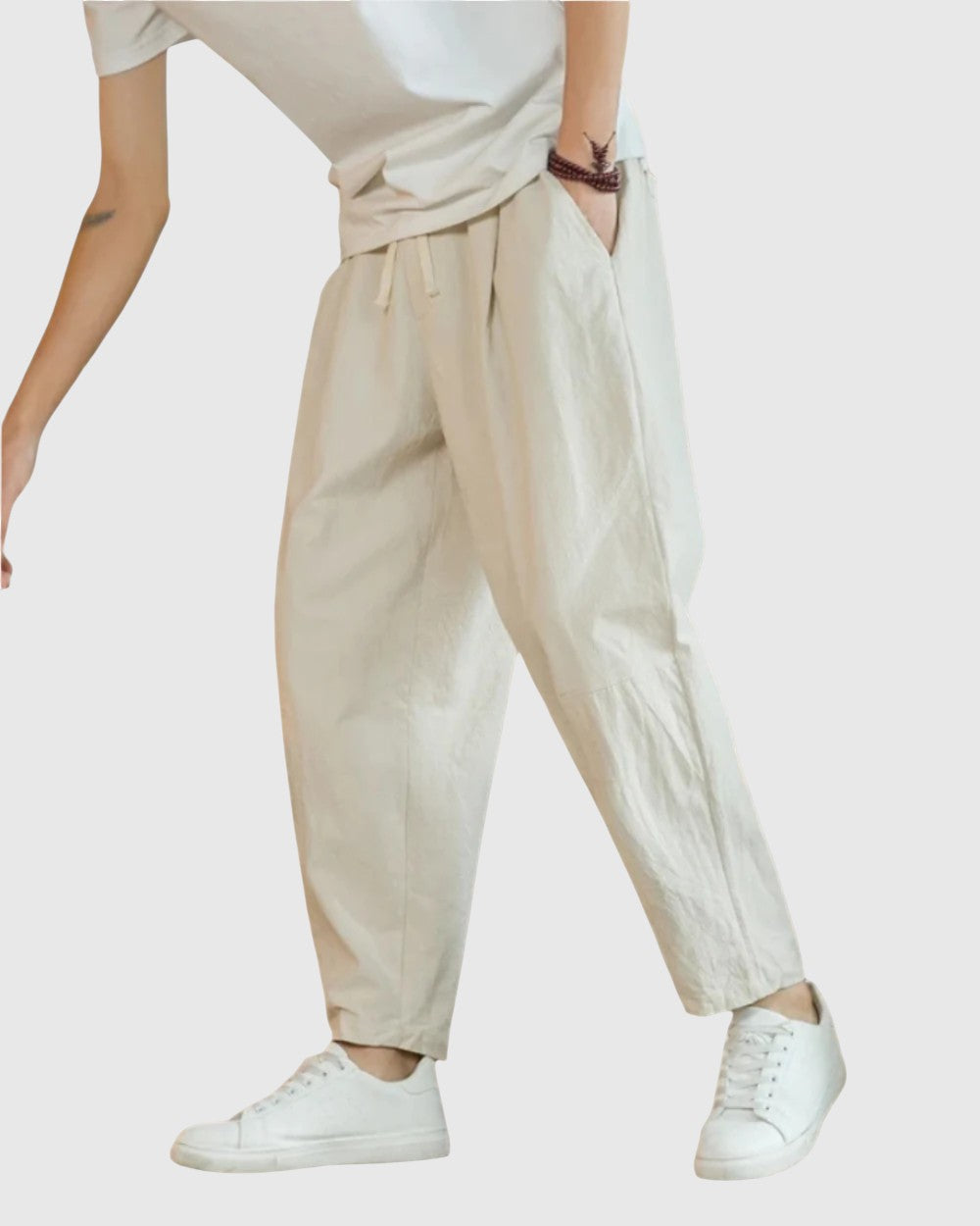 Acești pantaloni din bumbac combină perfect eleganța cu practicitatea de zi cu zi, fiind un accesoriu versatil pentru orice garderobă.
