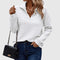 Acest pulover a fost conceput pentru a îmbina stilul cu confortul la fiecare ocazie. Fermoarul pe jumătate îi oferă un detaliu modern și versatil, care permite ajustarea gulerului după look-ul pe care dorești să îl creezi – fie că este unul casual sau elegant.