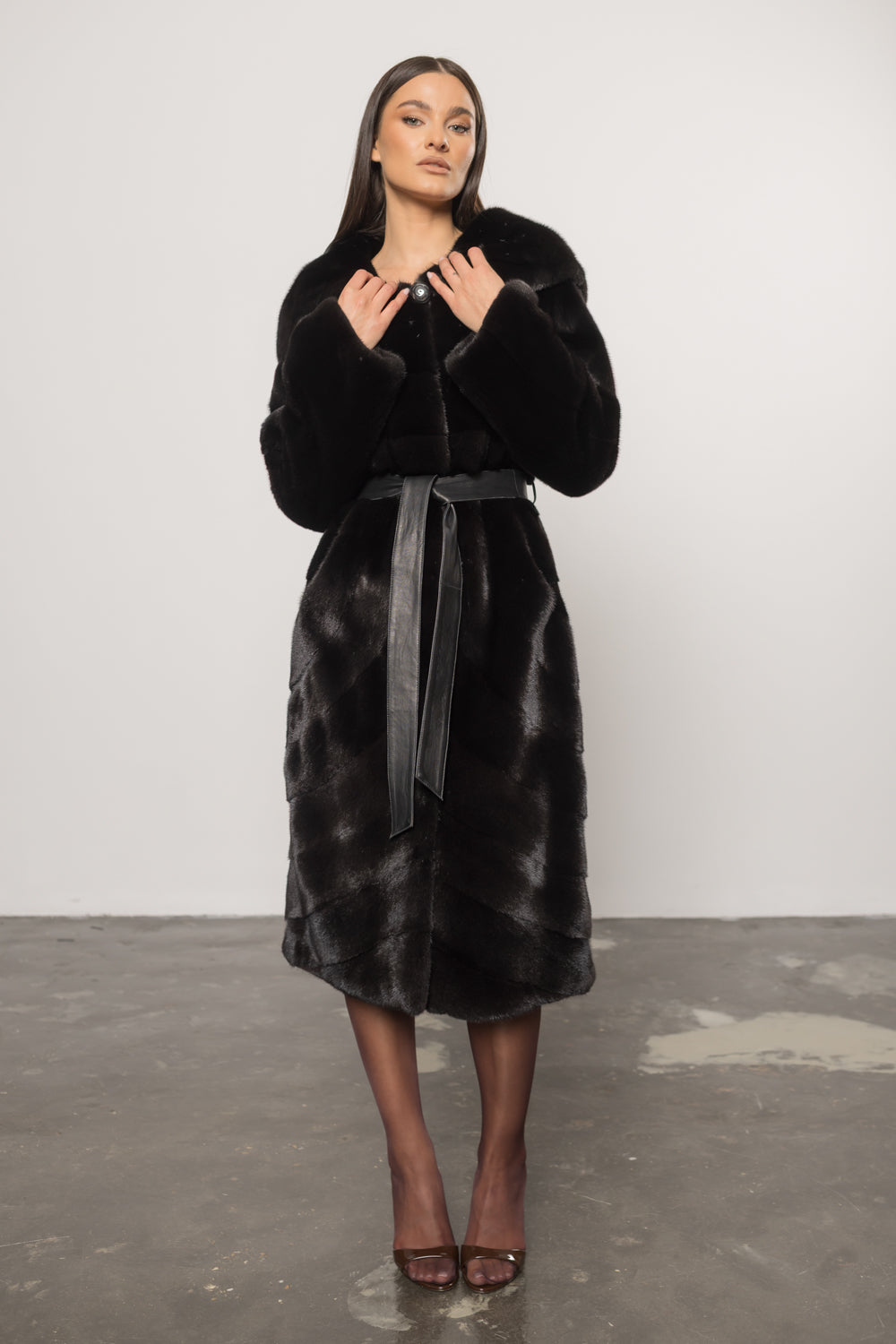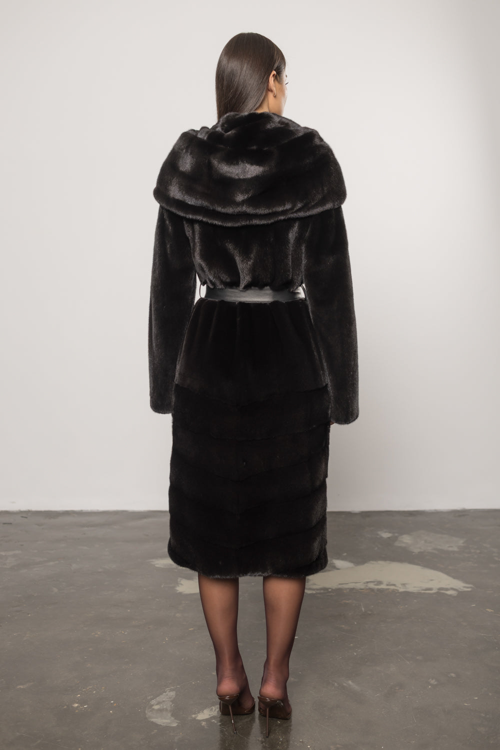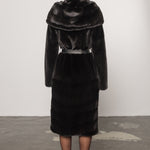 Palton din blană naturală de vizon Blackglama, cu glugă și cordon din piele, Diamond 424
