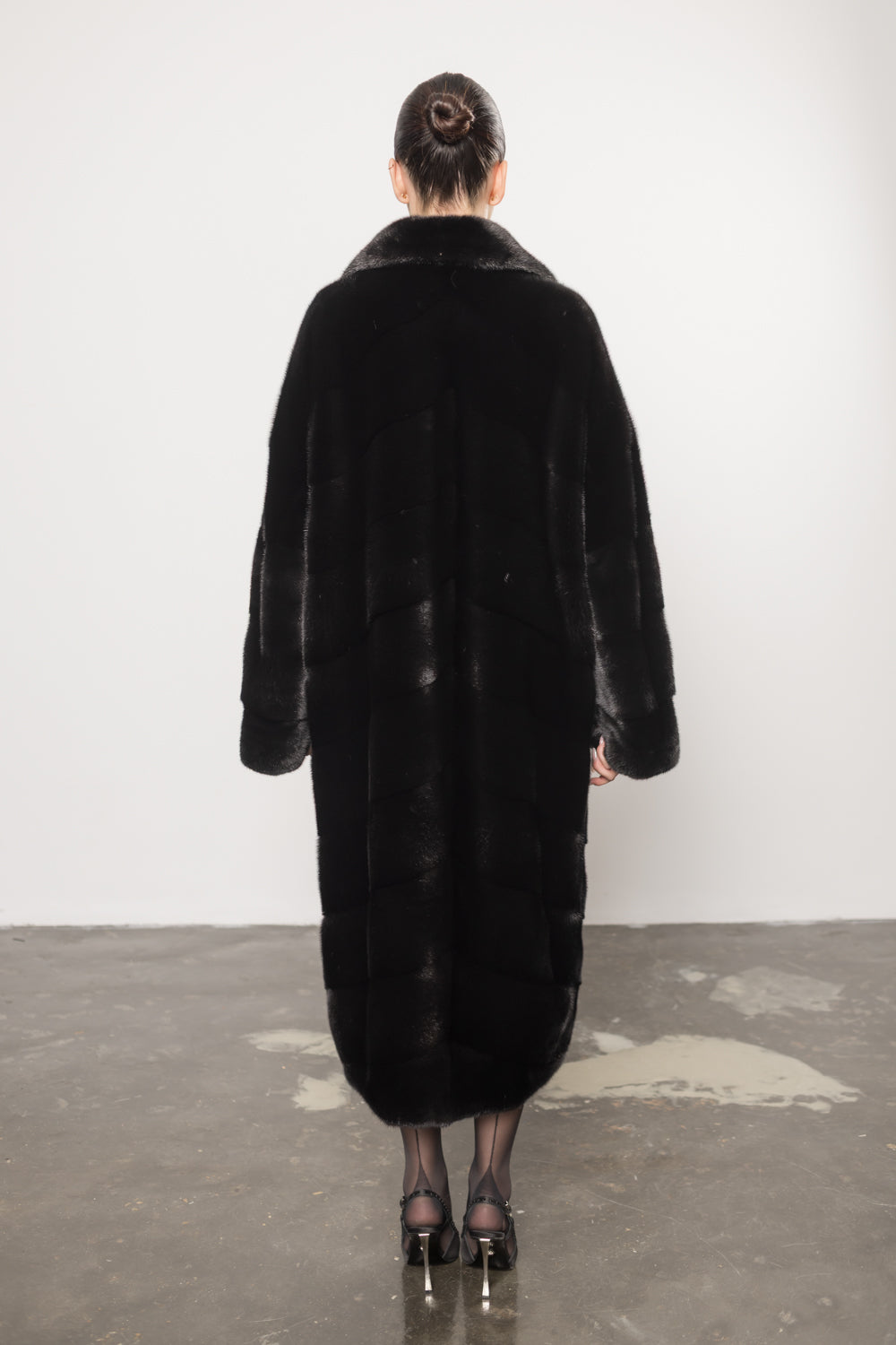 Realizat din blană de vizon de cea mai înaltă calitate, paltonul impresionează prin textura sa fină, densitatea uniformă și luciul natural, ce reflectă luxul autentic. Cusăturile dispuse armonios pun în valoare materialul, iar lungimea generoasă de 125 cm conferă un aer regal și protecție optimă în sezonul rece.