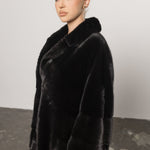 Palton din Blană Naturală de Vizon, Femei, Diamond Black 417