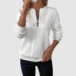 Acest hanorac îmbină confortul cu un design original. Datorită modelului tricotat, are un aspect elegant și stilat, iar fermoarul practic permite ajustarea decolteului după preferințele tale. O alegere perfectă pentru ținuta de zi cu zi sau timpul liber.