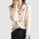 Un cardigan elegant care combină un design atemporal cu un confort maxim. Materialul moale și închiderea clasică cu nasturi îl fac o piesă versatilă, potrivită atât pentru blugi, fuste, cât și pentru pantaloni eleganți. Ideal pentru zilele mai răcoroase sau ca accesoriu lejer pentru birou ori pentru întâlniri.